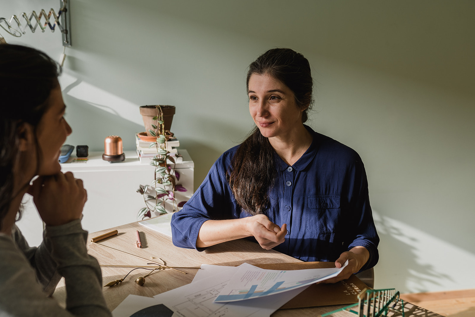 Es discuteix amb el client la possibilitat de reordenar l’espai per assegurar que les principals activitats que s’hi duen a terme es realitzen en les zones de major neutralitat, així com la possibilitat d’harmonitzar l’espai mitjançant l’aplicació de traçats geomètrics reguladors.